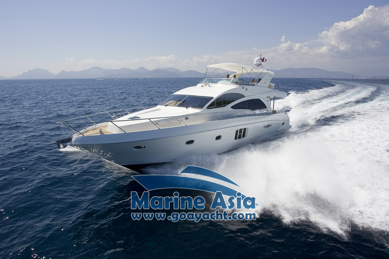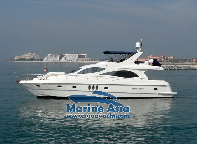 This awesome yacht in Goa has two Master cabins, two junior cabins, 3 washrooms with showers, a kitchen and a huge sunbathing area, an open-plan galley, a saloon, fly bridge, and large cockpit. This beautifully crafted Italian yacht is 66 feet of pure excellence. With a stylish design and fully outfitted with advanced technology, this 66 Majesty is first in its class. Every detail of this yacht has been meticulously created using the finest materials and finishes, designed with both sportiness and luxury in mind. Enjoy stunning views via the large interior windows, feel the ocean breeze on the fly bridge, or dine above the ocean on the grand deck. This stunning vessel is the “Ferrari of the water”.